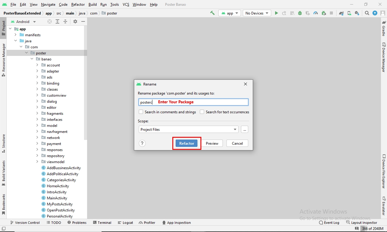 - And hit RefactorAllow a minute to let Android Studio update all changes.