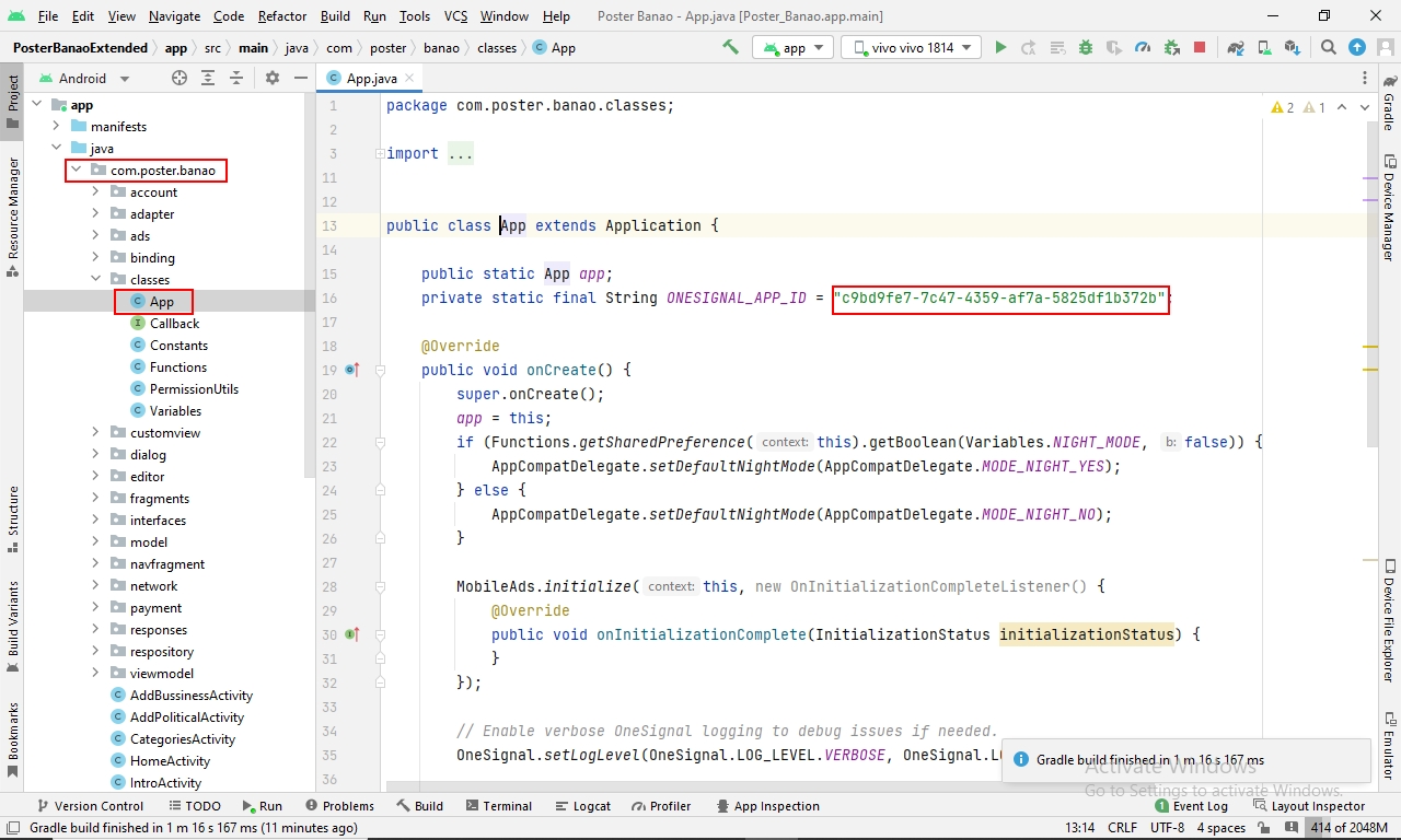 - Go to android >app >java > com.poster.banao > Classes > Constant.java